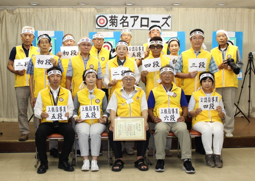 日本スポーツウエルネス吹矢協会 菊名アローズ支部では、今年夏のキャンペーンで全国1300支部の中で日本一になりました また、五段位、六段位の取得者も続々誕生し、皆『継続は力なり』を合言葉に、楽しみながら精神力・集中力が付き、腹式呼吸をベースにした吹矢式呼吸法で元気に活動しています 今年はおそろいのユニフォームも作り、大会の後の懇親会も楽しみのひとつ